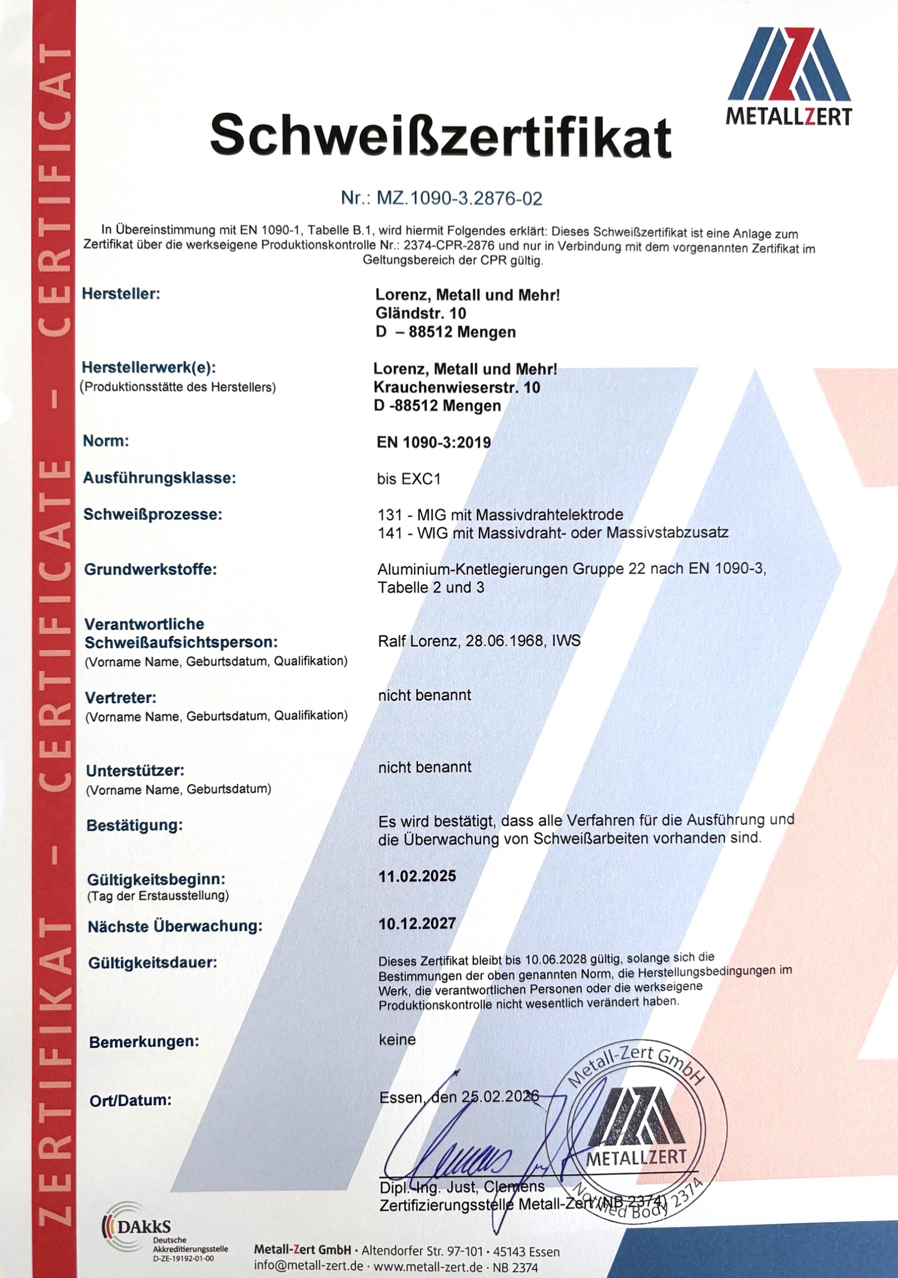 geprüfter Schweißer in MAG, MIG, WIG, E